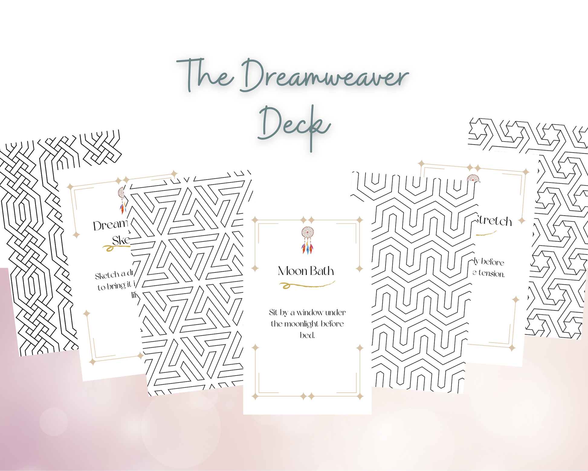 With 48 reflective cards, Dreamweaver bridges your night mind and waking life. Each card offers a ritual, prompt, or affirmation to capture dream insights, unlock creativity, and weave them into your day. Pair with a soothing Evening Harmony tea, a Sacred Night candle, and your The Dreamweaver’s journal to create a beautiful night-to-morning ritual. Over time, you’ll sleep deeper, wake more inspired, and turn those 3 a.m. sparks into real-world magic.